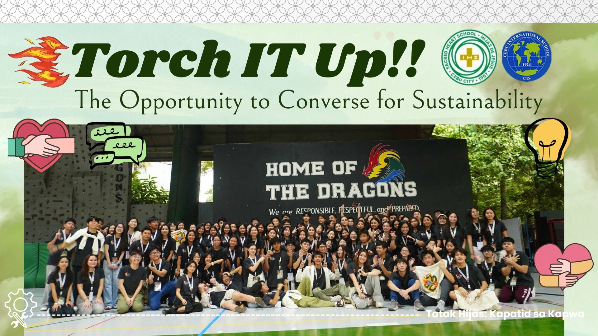 Thirteen members of Sacred Heart School -Hijas de Jesus Student Council 9th Congress attended Torch It Up! at Cebu International School (CIS) on Saturday, September 13, 2025, wherein 92 students from six private schools in Cebu City gathered for a full-day conference. Cebu City Mayor Nestor Archival gave an inspiring message to kick off the day, reminding the participants that today's youth hold the key to the future. To preserve the environment for future generations, he promoted practices such as composting, water conservation, waste segregation, and tree planting. His speech truly inspired all those who were present, setting the perfect tone for the rest of the day. Houses Phoenix, Gryphon, Hydra, Triton, Chimera, Pegasus, and Cerberus were the seven houses into which the participants were split. Together with students from various schools, each house participated in entertaining physical challenges and thought-provoking service projects. The Olympian Quest, a relay race around campus that tested each house's speed, as well as their creativity and teamwork, kicked off the day with energy levels off the charts among all the houses!